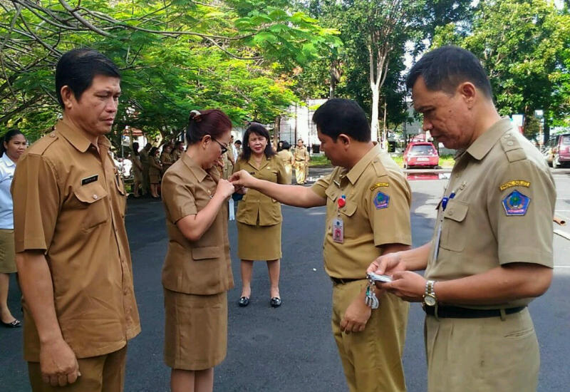 Manado, detikawanua.com – Aparatur Sipil Negara (ASN) khususnya pejabat eselon III, IV dan seluruh staf di Biro Pemerintahan dan Humas Setdaprov Sulut, sudah di tandai pengenal atau tag name selama masih dalam jam kerja. Sebagaimana yang dikatakan Kepala Badan Kepegawaian Daerah (BKD) Sulut, Femmy M Suluh, melalui Sekertaris BKD, Lucky Taju, saat mendampingi Kepala Biro PemHum, Jemmy Kumendong saat apel pagi yang sekaligus dirangkaikan dengan pemasangan tag name ASN di Biro Pemhum, Selasa (24/5) pagi tadi