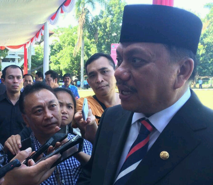 Gubernur Sulut, Olly Dondokambey saat diwawancarai wartawan usai perayaan Harkitnas di kantor Gubernur Sulut.