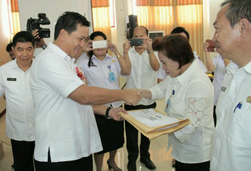Wagub Sulut saat serahkan hasil UN secara simbolis kepada salah satu Kepsek dan Diknas daerah. (ist)