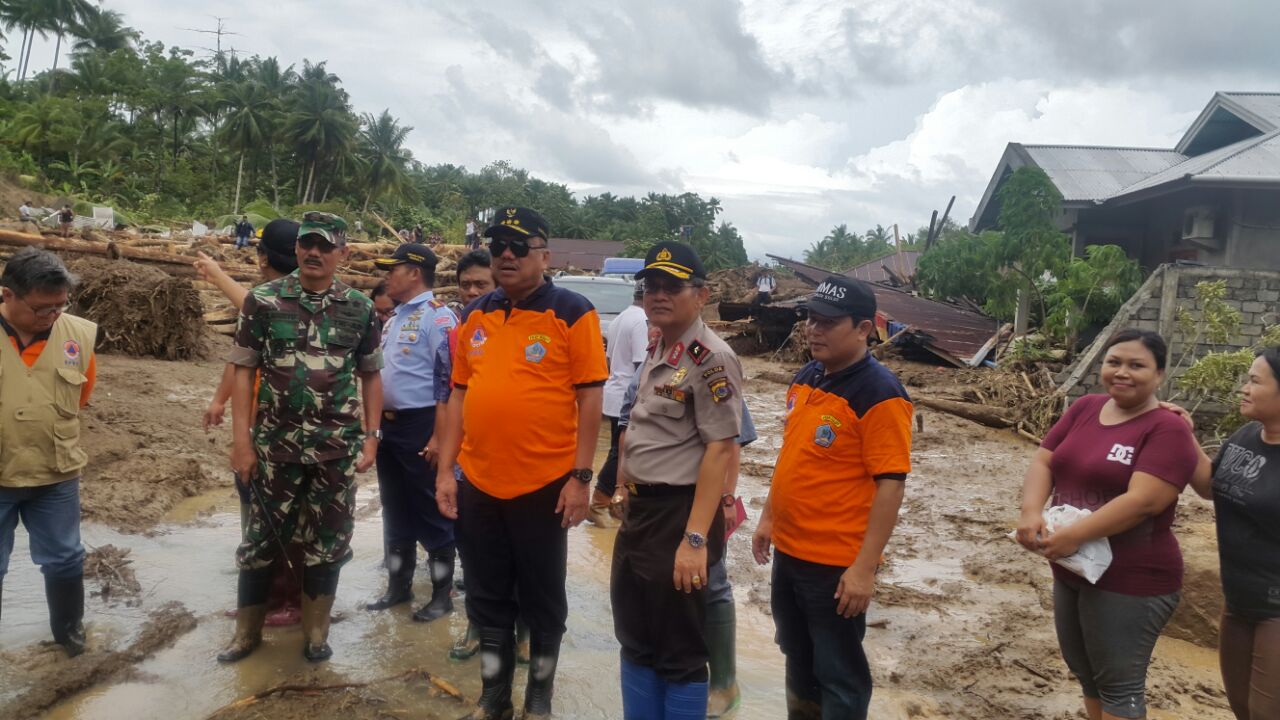 Gubernur Sulut, Olly Dondokambey bersama rolmbongan Forkompimda Sulut dilokasi bencana.