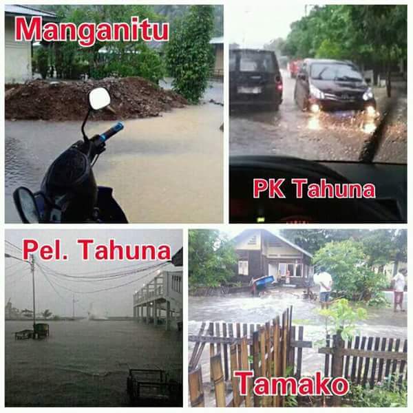 Diketahui dari data yang diterima BPBD Provinsi Sulut, untuk Kabupaten Sangihe di Desa Akembawi dan Beha terjadi banjir bandang sampai pagi tadi kerusakan rumah 40 rmh 4 orang hilang saat ini sementara dievakuasi. Saat ini terjadi gelombang pasang dilaut.