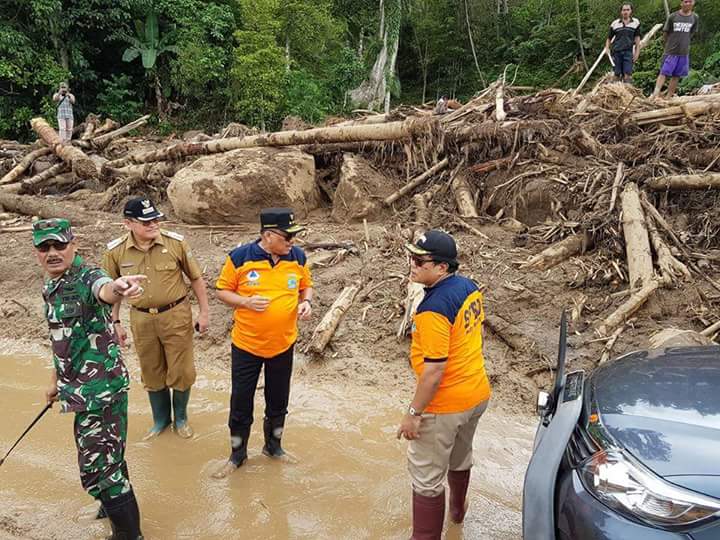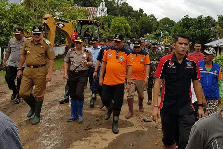 foto Gubernur Sulut, Olly Dondokambey dan rombongan Forkompimda Sulut didampingi Bupati dan Wakil bupati Sangihe di lokasi bencana banjir bandang. (foto: ap/ist)