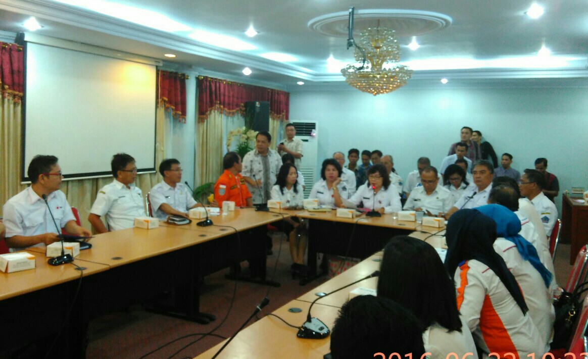 Rakor penanggulangan bencana yang dipimpin Wakil gubernur Sulut, Steven Kandou yang dihadiri sejumlah dinas dan lembaga terkait.