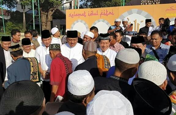 Manado, detikawanua.com – Puncak perayaan hari raya Idul Fitri 1437 Hijriyah atau tahun 2016 ini bagi umat Islam diseluruh dunia termasuk di Indonesia yang jatuh pada Rabu (06/07) hari ini, khususnya di Provinsi Sulawesi Utara (Sulut) merupakan perdana perayaan Idul Fitri diawal kepemimpinan Gubernur Sulut, Olly Dondokambey bersama Wakil guubernur, Steven kandouw yang hadir dalam pelaksanaan sholt Ied bersama masyarakat sekaligus menggelar safari lebaran disejumlah jajaran Forkopimda Sulut. Dimana, oleh Sekertaris Provinsi (Sekprov) Sulut, Siswa Rachmat Mokodongan juga melaksanakan sholat Ied bersama masyarakat pagi tadi.