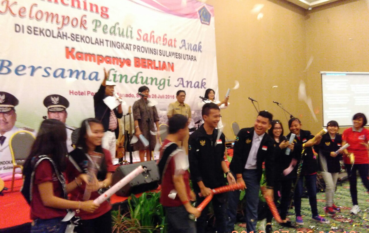 Turut hadir Deputi Perlindungan Anak Kementerian Pemberdayaan Perempuan dan Perlindungan Anak RI, Valentin Ginting, serta para anak-anak disejumlah sekolah di Sulut.