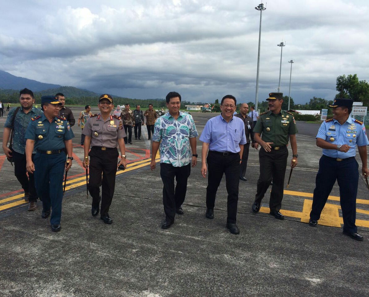 Wakil Gubernur Sulut, Drs Steven OE Kandouw bersama Ketua DPD RI, Irman Gusman serta rombongan dari Pimpinan Forkopimda unsur TNI/Polri.