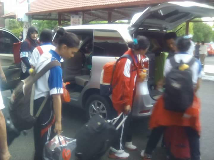 Foto sejumlah kontingen FLS2N yang menunggu jemputan serta sebagian telah menyewa taksi gelap. (kf)