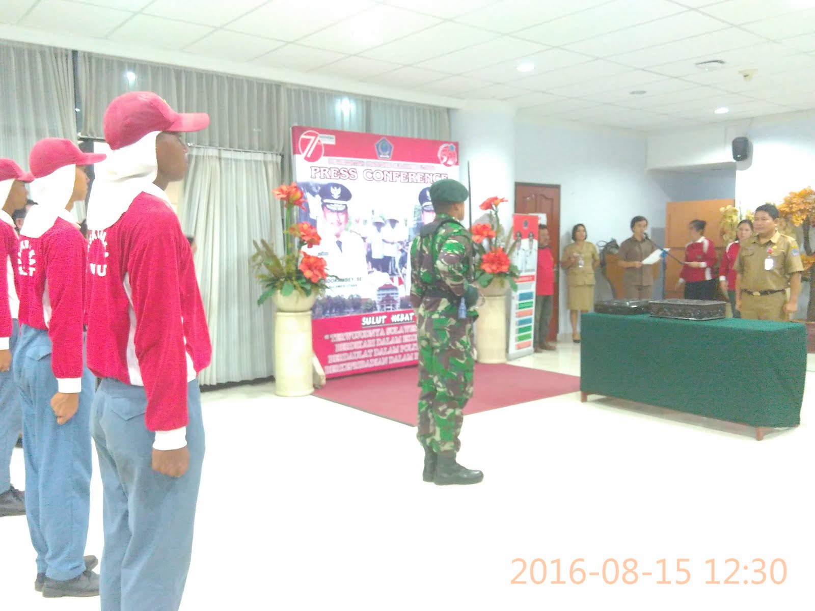“Ini merupakan rangkaian acaranya setelah sebelumnya telah ada pencanangan HUT RI sebelumnya Jumat (13/08) laluoleh pak Gubernur Sulut (Olly Dondokambey), dan pada siang ini juga gladi bersih sudah dipimpin pak Wakil Gubernur (Steven OE Kandouw) yang selanjutnya pada sebentar akan ada prosesi pengukuhan para Paskibraka,”terang Kumendong kepada wartawan.