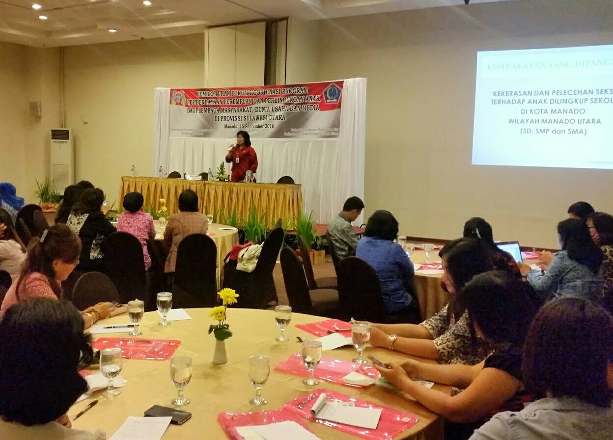Manado, detiKawanua.com – Terbentuknya Forum Koordinasi di tingkat daerah (Forkomda) yang merupakan program dari Kementerian untuk menangani dan mengantisipasi terjadinya korban kekerasan kepada perempuan dan anak didalamnya terdapat unsur pemerintah, Polri, Lembaga Swadaya Masyarakat (LSM), Ormas serta unsur Jurnalis nantinya bertugas di daerah Kabupaten Kota di Sulut, diyakini Kepala Badan Pemberdayaan Perempuan Perlindungan Anak (BP3A) Provinsi Sulut, Erni Tumundo tim tersebut bisa dimaksimalkan dengan baik.