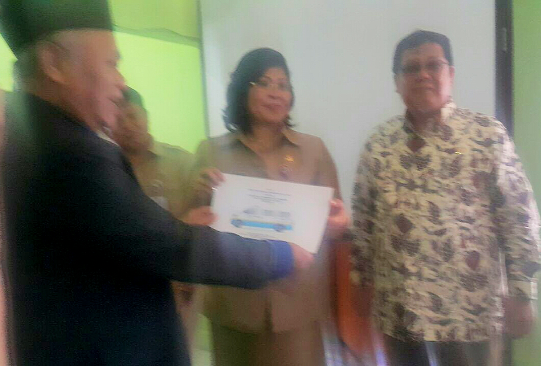 Ketua Komisi VIII DPRRI, Ahmad F Harun menyerahkan bantuan mobil operasional P2TP2A kepada Kepala BP3A Provinsi Sulut, Ir Erni B Tumundo MSi.