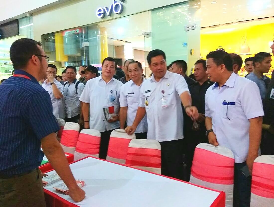 Wakil Gubernur Sulut, Drs Steven Kandouw didampingi Kadisnakertrans Sulut, Marsel Sendoh bersama Ketua KNPI Sulut, Jackson Kumaat memantau lokasi stand pameran Job Fair di Mantos Manado.