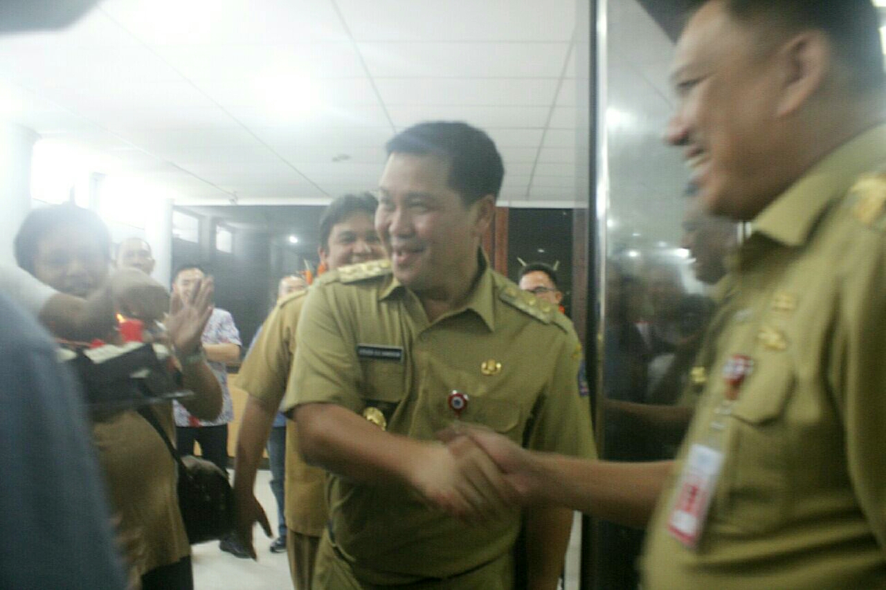 Tepat pukul 11.00 WITA, saat Wagub Kandouw keluar dari ruangan kerjanya untuk menjemput Gubernur Olly Dondokambey SE dari lift, barisan JIPS sudah berjejer dan langsung menyanyikan Happy Birthday. Terlihat raut wajah Wagub Sulut memerah haru sambil tersenyum.