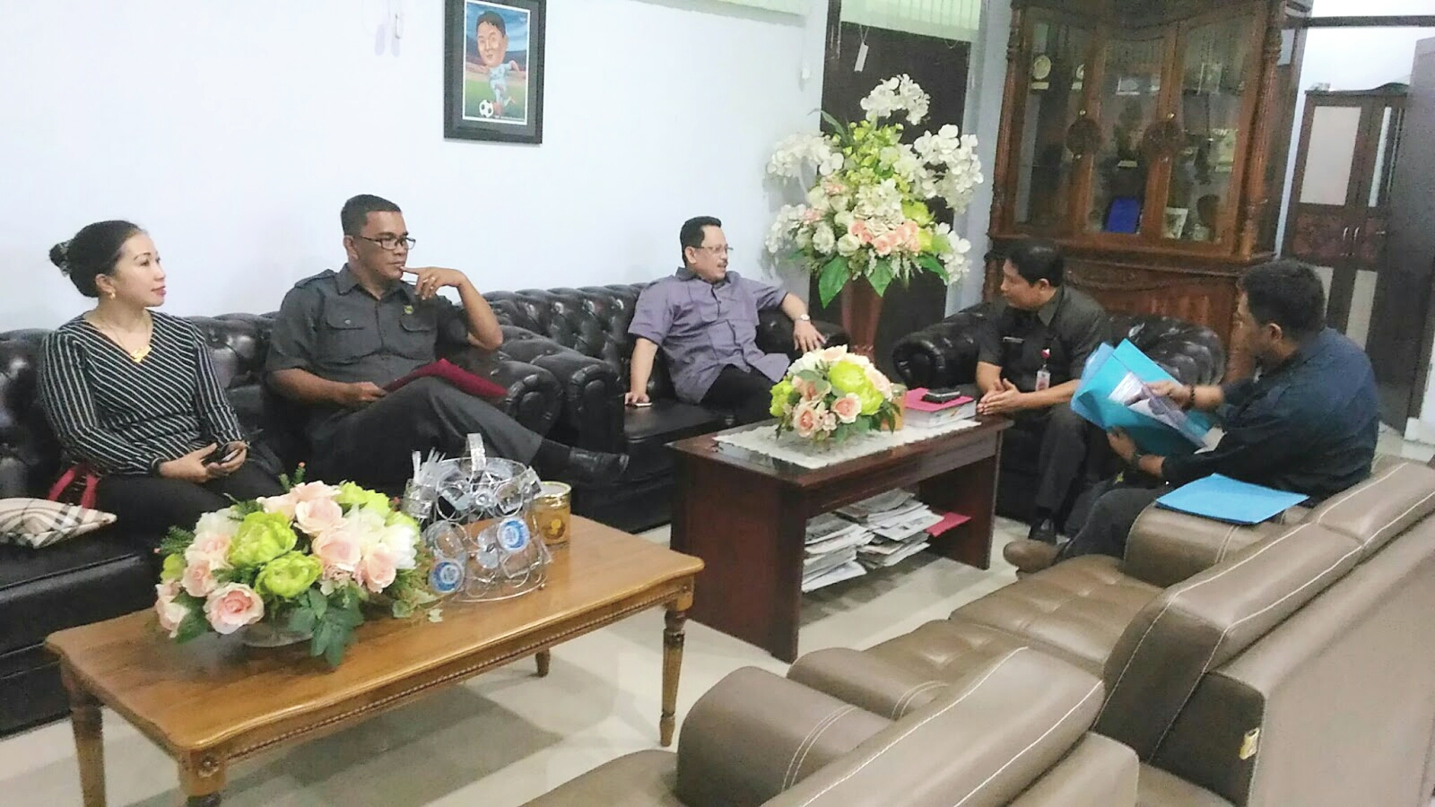 Diskusi antara Kepala Biro PemHum Setdaprov Sulut, Jemmy Kumendong bersama empat Anggota DPRD Kota Kotamobagu.