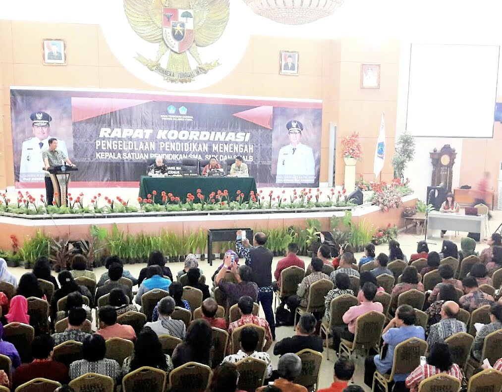 Wakil Gubernur Sulut, Steven Kandouw saat memberikan arahan sambutan kepada jajaran Kepala Sekolah tingkat atas.
