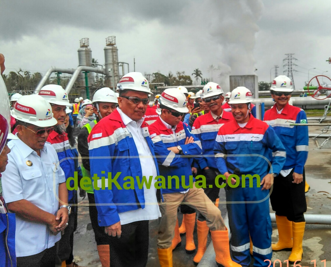 Sulut, detiKawanua.com – Memastikan dengan difungsikannya dua unit Pembangkit Listrik Tenaga Panas Bumi (PLTP) yakni 5 dan 6 (total 120 Megawatt unit 1 sampai 6) milik PT Pertamina Geothermal Energi (PGE) area Lahendong di Sulawesi Utara (Sulut), oleh Menteri Energi dan Sumber Daya Mineral (ESDM), Ignasius Jonan bersama rombongan yang didampingi Gubernur Sulut, Olly Dondokambey pada Sabtu (26/11) pagi tadi langsung mengunjungi lokasi pengoperasian PLTP dari unit 5 dan 6.