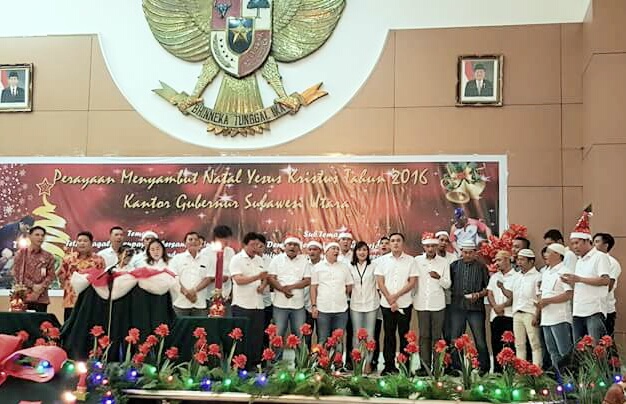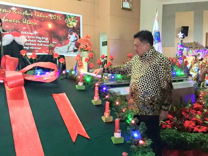 Manado, detiKawanua.com – Dalam rangka menyambut perayaan Natal tahun 2016, Pemerintah Provinsi Sulawesi Utara melaksanakan ibadah Natal bersama Gubernur dan seluruh pegawai lungkup Pemprov Sulut. Ibadah perayaan Natal tersebut dilaksanakan Jumat (9/12) bertempat di ruang Mapalus kantor Gubernur Sulut. Ibadah dipimpin oleh Ibu Pendeta Lisye Tamuntuan Makisanti, Mth. Dalam khotbah Pendeta mengatakan damai Natal selalu menjadi bagian dari seluruh masyarakat Sulut.