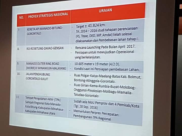 Jakarta, detiKawanua.com – Gubernur Sulut Olly Dondokambey pada Jumat (27/01) siang tadi di Gedung Sekertariat Kabinet di Jakarta telah memaparkan tentang perkembangan Proyek Strategis Nasional (PSN) dan Program Prioritas Presiden (PPP) RI tentang Provinsi Sulut dihadapan jajaran Kementrian Kemaritiman, BAPPENAS dan beberapa Gubernur yang dipimpin Wakil Sekretariat Kabinet RI, Ratih Nurdiati. (ap/tim/dkc).
