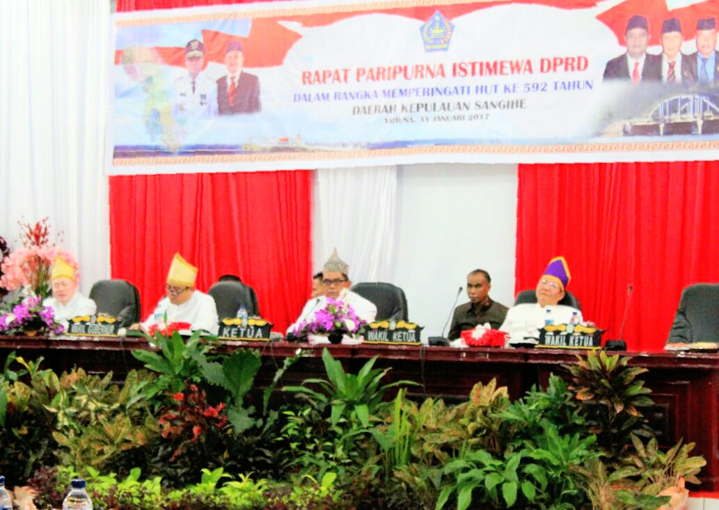 “Semua mendapatkan hak yang sama, jadi jangan sampai ketinggalan. Untuk itu bagi pemerintah dan seluruh anggota DPRD Sangihe haruslah saling topang menopang membangun daerah, dengan terus berkoordinasi dan saling meningkatkan untuk daerah Sangihe yang sama-sama kita cintai,” terang Wakil Gubernur Sulut, Steven Kandouw dalam sambutan Rapat Paripurna Istimewa DPRD Kabupaten Sangihe, dalam rangka HUT ke-592 Kabupaten Kepulauan Sangihe, Selasa (31/01) pagi tadi.