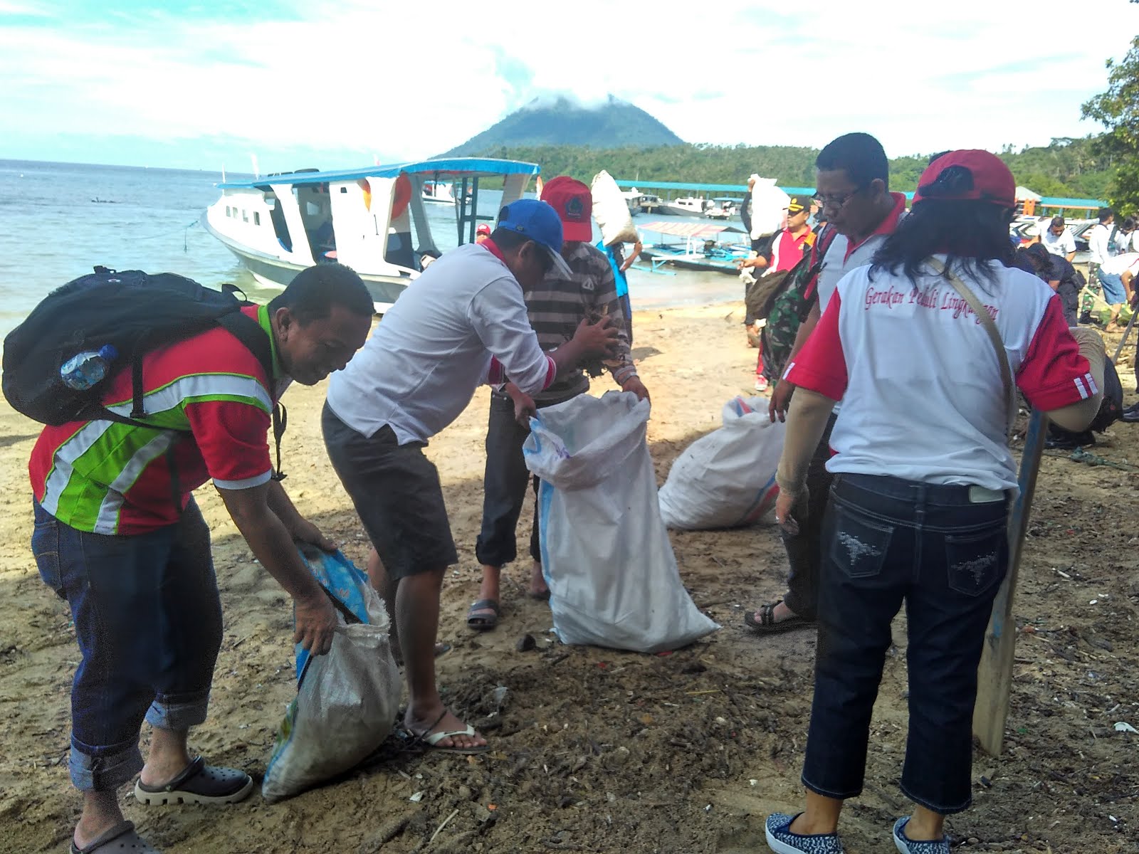 Foto tim DLH Provinsi Sulut saat melakukan pembersihan sampah waktu lalu di pantai Bunaken.