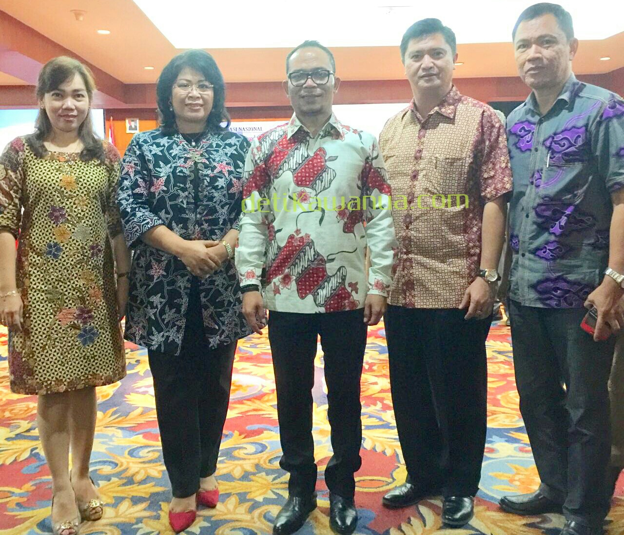 Foto Kepala Dinas Tenaga Kerja dan Transmigrasi Provinsi Sulut, Erni Tumundo (kiri,red) bersama Menteri Ketenagakerjaan RI, Hanif Dhakiri (tengah,red) dengan jajaran pejabat Nakertrans.