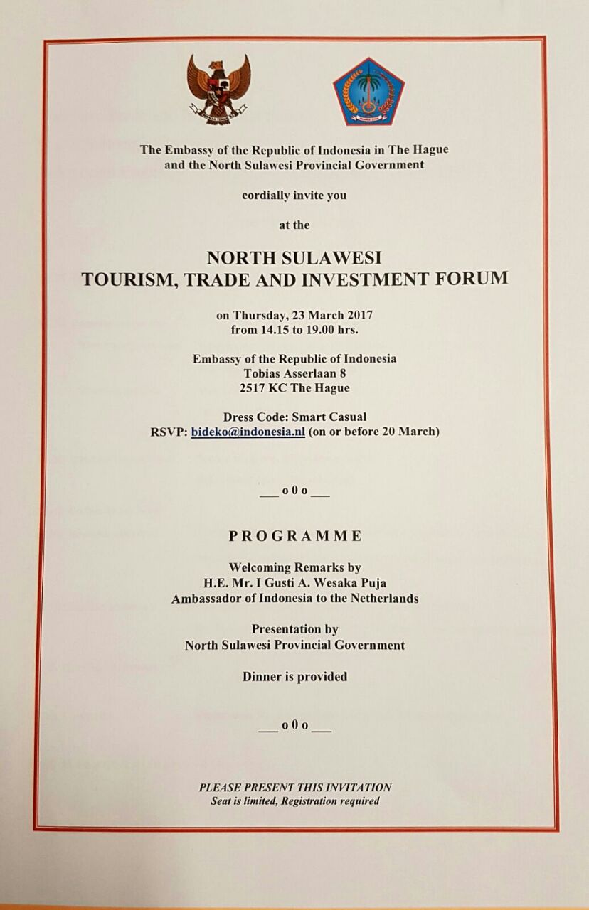 Diketahui kegiatan tersebut selain bentuk mempromosikan wilayah Sulawesi Utara juga sebagai bentuk kepedulian dan kecintaan untuk pengembangan sektor ekonomi terutama di bidang pariwisata dan investasi. Duta Besar Indonesia di Polandia, Peter Gontah, Duta Besar Indonesia Untuk Ceko Aulia Rahman, Duta Besar RI Bosnia Amelia Yani.