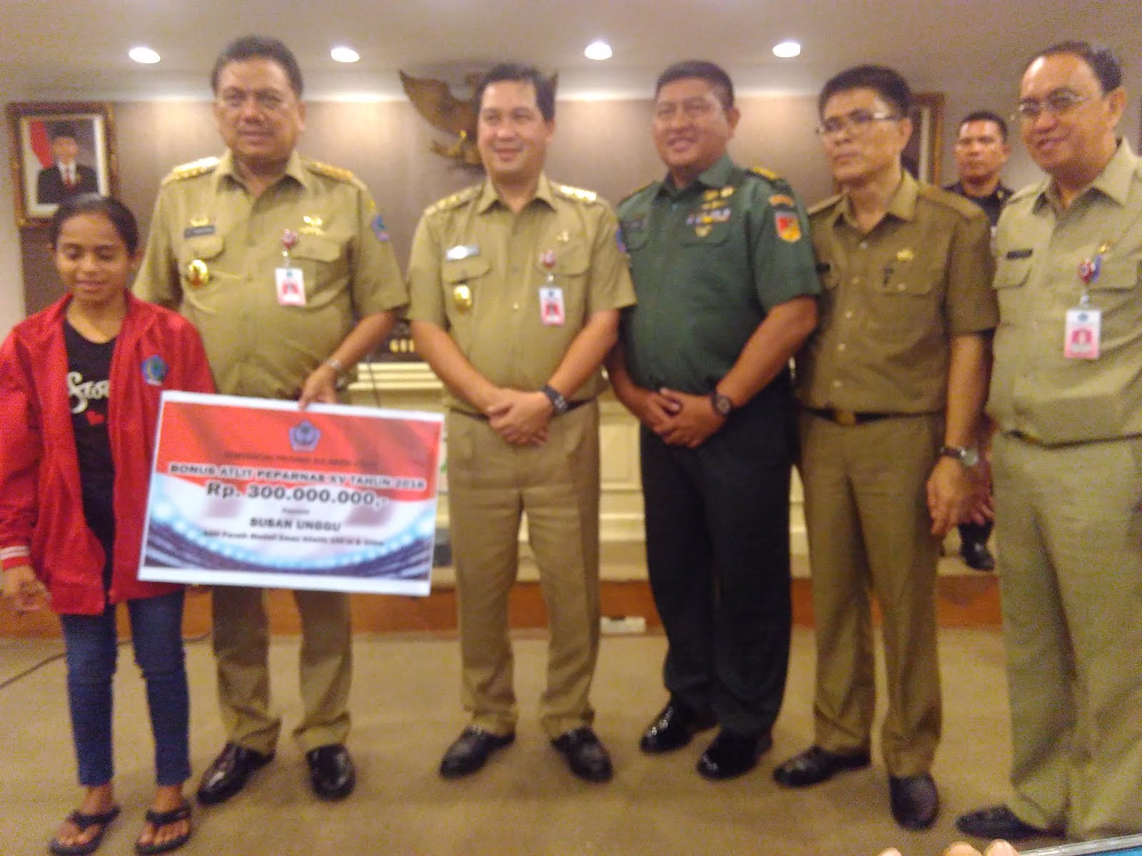 Sementara itu dalam laporan Kadispora Sulut, Jani Lukas mengatakan, para atlet Peparnas XV masing-masing akan mendapatkan bonus sebesar Rp150 juta untuk peraih emas perorangan, Rp100 juta untuk peraih perak perorangan dan Rp50 juta untuk peraih perunggu perorangan.