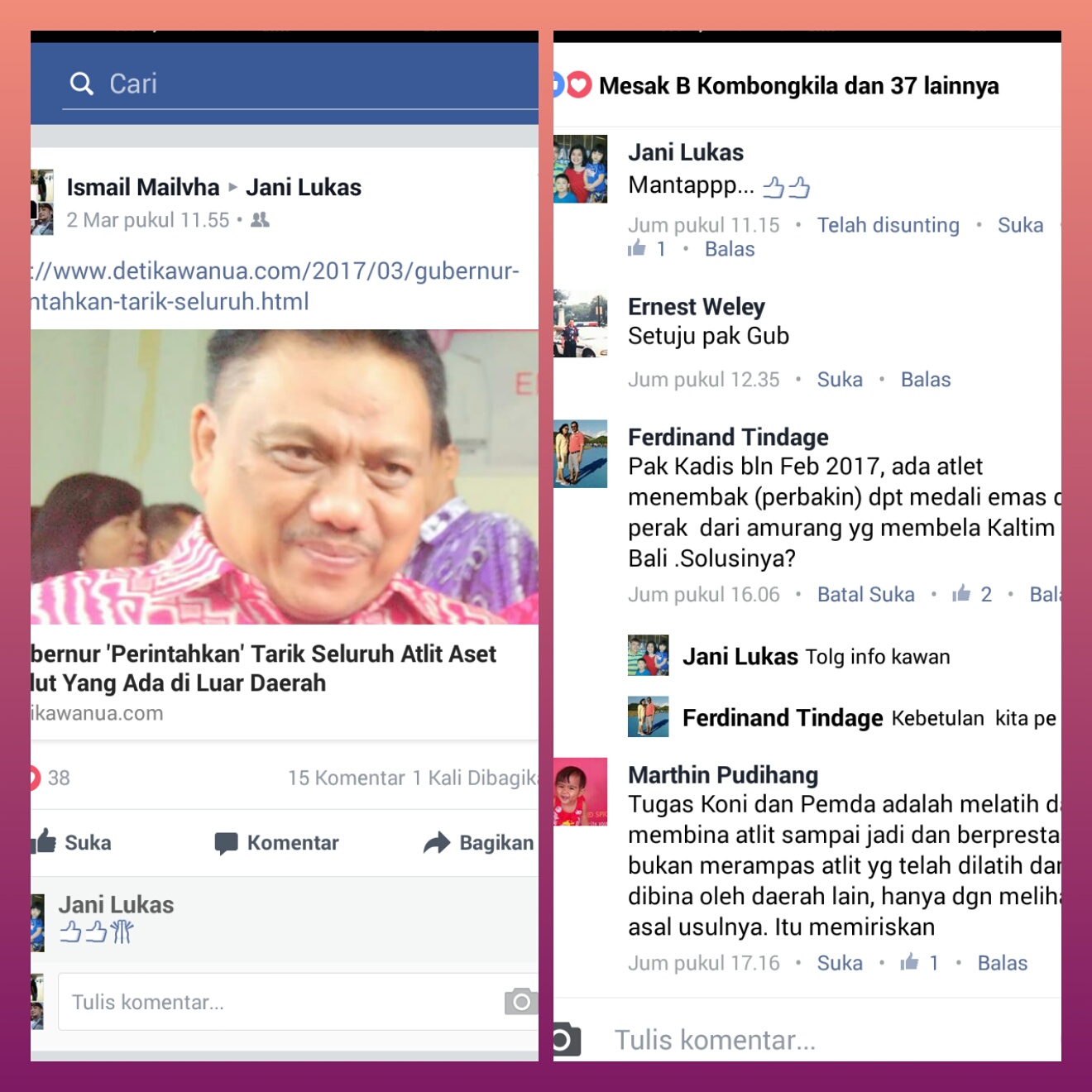 “Tugas KONI dan Pemda adalah melatih dan membina atlit sampai jadi (berhasil) dan berprestasi, bukan ‘merampas’ atlit yang telah dilatih dan dibina oleh daerah lain hanya dengan melihat asal usulnya. Itu memiriskan,” tulis akun Marthin Pudihang yang nampaknya juga merupakan salah satu atlit Sulut yang berprestasi di luar daerah.