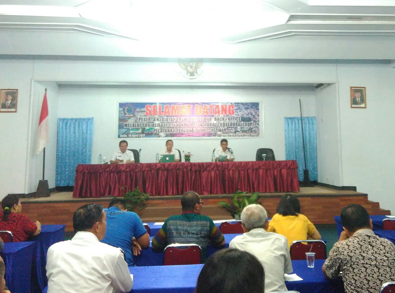“Semua itu sesuai Standard Operasional Prosedural (SOP) yang harus diikuti baik pemerintah maupun pelaku usaha. Tidak bisa dilakukan perubahan, kalaupun ada perubahan itu harus sesuai kondisi yang ada dan nantinya ditetapkan melalui regulasi supaya semua bisa memahami.  Itu semua sudah diinformasikan kepada pelaku usaha melalui sosialisasi demi pelaksanaan yang pelayanan efektiv dan objektiv,” terang Kepala DPM-PTSP Sulut, Happy Korah saat membuka kegiatan Front dan Back Office Melalui Sosialisasi Standard Operasional Prosedural (SOP) Pelayanan Perizinan dan Non Perizinan, yang diselenggarakan di salah satu Hotel di Manado, Rabu (19/04).