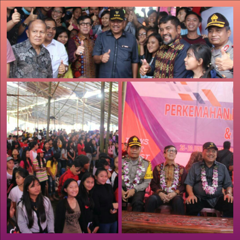 Manado, detiKawanua.com – Menteri Hukum dan HAM Republik Indonesia Yasonna H. Laoly bersama Gubernur Sulut Olly Dondokambey dalam menghadiri dan membuka Perkemahan Kreatif Remaja Nasional (PKRN) Persekutuan Gereja-Gereja Indonesia (PGI) dan Sinode GMIM 2017 yang dihadiri ribuan remaja di Bumi Perkemahan Lengkoan Leilem Kabupaten Minahasa, Senin (26/06).