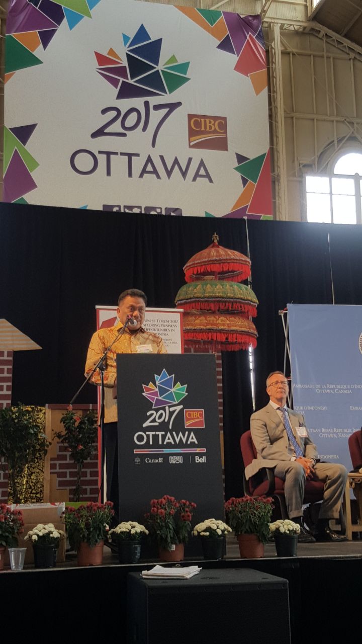 Internasional, detiKawanua.comAgenda Internasional Forum Bisnis  bertajuk ‘EXPLORING  BUSINESS OPPORTUNITIES IN INDONESIA (Indonesia-Canada Bisnis Forum)’ di Gedung Aberdeen Pavilion, Landsdowne Park, Ottawa-Canada, pada (25/08) waktu setempat yang dihadiri Gubernur Sulut, Olly Dondokambey sekaligus menjadi panelis/pembicara pada pembahasan ‘Investment Opportunities in Indonesia’ memaparkan secara detail berbagai peluang investasi di Provinsi Sulawesi Utara, dibidang Pariwisata, Sumber Energy, Infrastruktur dan Agro Industri dihadapan para peserta yang hadir.
