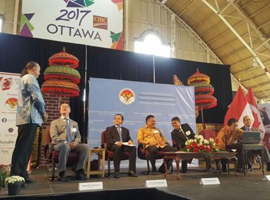 Adapun di sela-sela kegiatan itu juga, Gubernur Olly telah diberikan kehormatan bersama dengan Walikota Ottawa Jim Watson dan Deputi Chief Mision/Wakil Duta Besar RI Canada, Suwartini Wirta untuk membuka acara ‘FESTIVAL INDONESIA-KANADA 2017’ yang ditandai dengan pemukulan gong bersama.