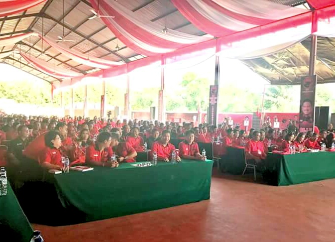 Minut, detiKawanua.com – Ketua DPD PDI Perjuangan Sulut, Olly Dondokambey yang juga sebagai Bendahara Umum DPP PDI P itu, mengungkapkan dalam pelaksanaan kegiatan Rapat Kerja Daerah (Rakerda) DPD PDI P Sulut yang dihadiri Ketua Umum, Megawati Soekarno Putri bersama Wakil Sekjen, Utut Adianto yang digelar di Sekertariat DPD PDI P Sulut Kabupaten Minahasa Utara, Jumat (04/08) tadi, telah merumuskan tiga hal untuk menghadapi pelaksanaan pesta demokrasi Pilkada 2018 (6 daerah di Sulut,red) dan Pemilu 2019 (Pilcaleg dan Pilpres,red) nanti.