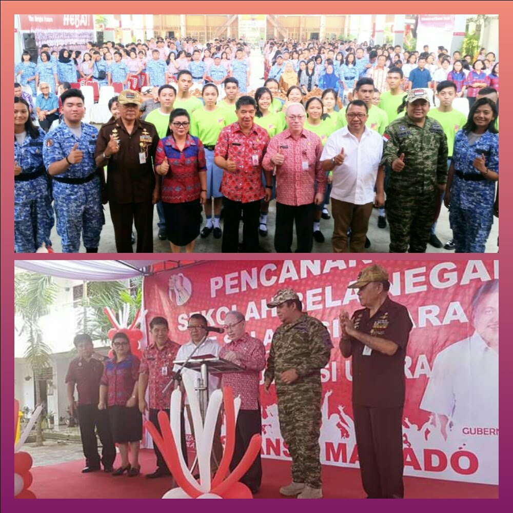 “Dengan memanjatkan puji syukur kepada Tuhan yang kuasa. Saya atas nama Gubernur Sulut Olly Dondokambey mencanangkan sekolah Bela Negara di provinsi Sulawesi Utara,” terang Palandung.