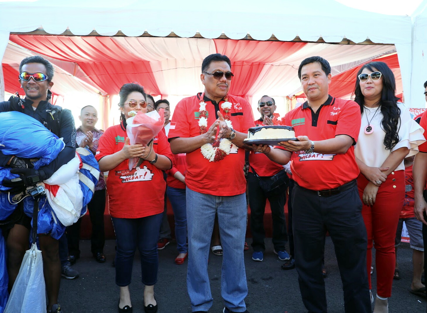 (Gubernur Olly saat menyalakan dan peniupan lilin HUT ke 53 Provinsi Sulut dalam acara pesta rakyat di Boulevard)