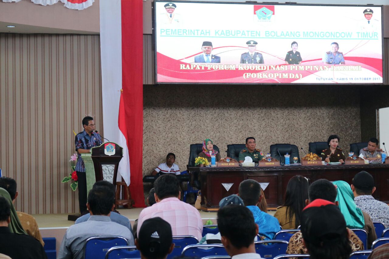 Boltim, detiKawanua.com – Bupati Bolaang Mongondow Timur (Boltim), Sehan Salim Landjar SH, memimpin Rapat Forum Koordinasi Pimpinan Daerah (Forkopimda) Kabupaten Boltim di Ruang Rapat Kantor Bupati, Kamis (19/10). rapat membahas isu-isu strategis yang berkaitan dengan kehidupan sosial yang sedang berkembang di Kabupaten Boltim.