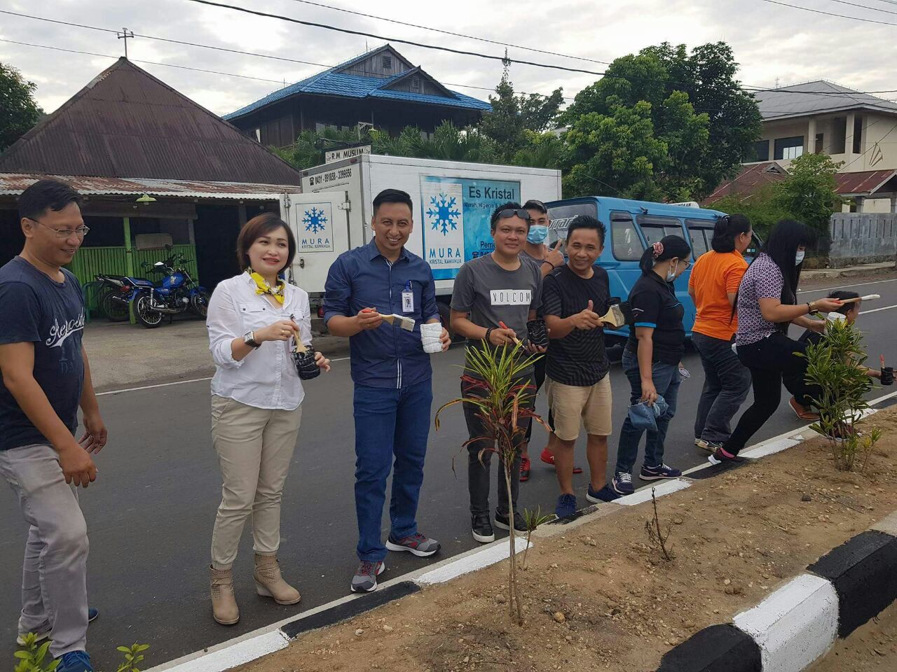 Minsel, detiKawanua.com – Demi keindahan dan penataan kota Amurang yang serasi dan selaras dengan pembangunan kota secara keseluruhan maka Jumat (20/10), Dinas Lingkungan Hidup (DLH) yang dipimpin oleh Kadis Roi Sumangkut MT melakukan kegiatan Pengecetan Median Jalan yang turut dihadiri oleh pimpinan Unit Amurang Bank Negara Indonesia (BNI), Bank Mandiri, dimana DLH merupakan garda terdepan dalam kegiatan pengecetan tepi jalan trotoar.