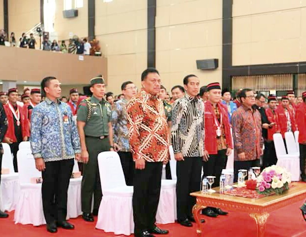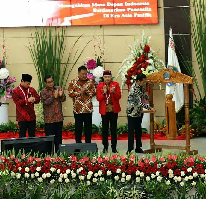 Manado, detiKawanua.com – Bunyi Tetengkoren bergema di Graha Gubernuran Bumi Beringin, Manado, Sulawesi Utara, Rabu (15/11/2017) siang, ketika dipukul berulangkali oleh Presiden RI Joko Widodo sambil disaksikan Gubernur Olly Dondokambey SE dan Ketua Presidium Gerakan Mahasiswa Nasional Indonesia (GMNI) Chrisman Damanik sebagai pertanda resmi dibukanya Kongres Trisakti XX GMNI ke-20.