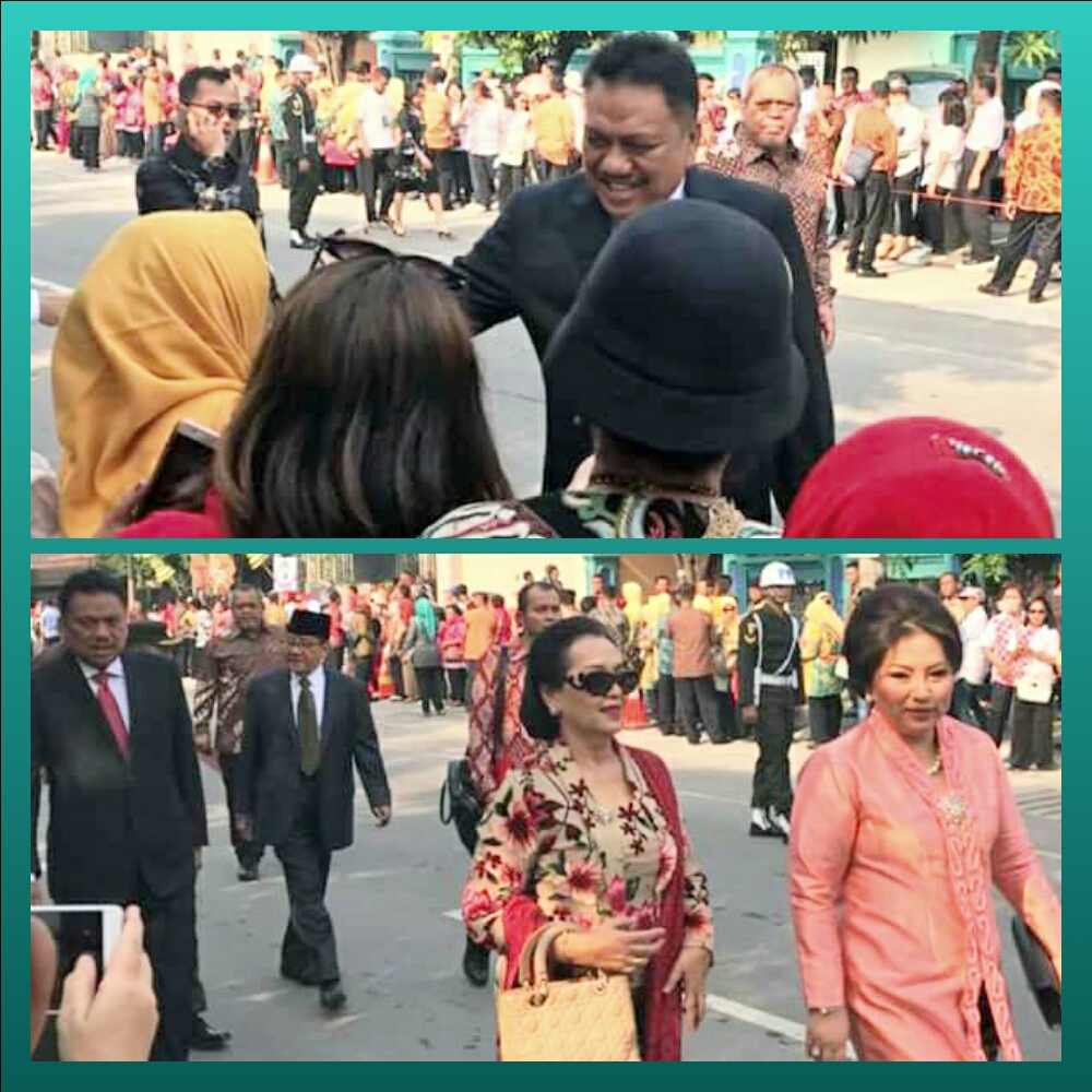 Solo, detiKawanua.com – Prosesi sakral akad nikah dari putri Presiden RI Joko Widodo yakni Kahiyang Putri Widodo bersama Bobby Nasution yang berlangsung di Graha Saba Buana, Solo Jawa Tengah pada Rabu (08/11) pukul 09.00 WIB pagi tadi, selain dihadiri para undangan jajaran Menteri Kabinet Kerja Jokowi-JK (Jusuf Kalla), juga dihadiri Gubernur Sulut, Olly Dondokambey didampingi isteri tercinta Rita Dondokambey-Tamuntuan.