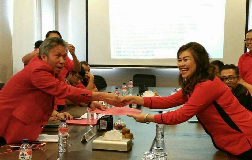 Jenny Mumek Saat menyerahkan CV bakal calon kepada Sekertaris DPD PDI-P Sulut Franky Wongkar/Ist.