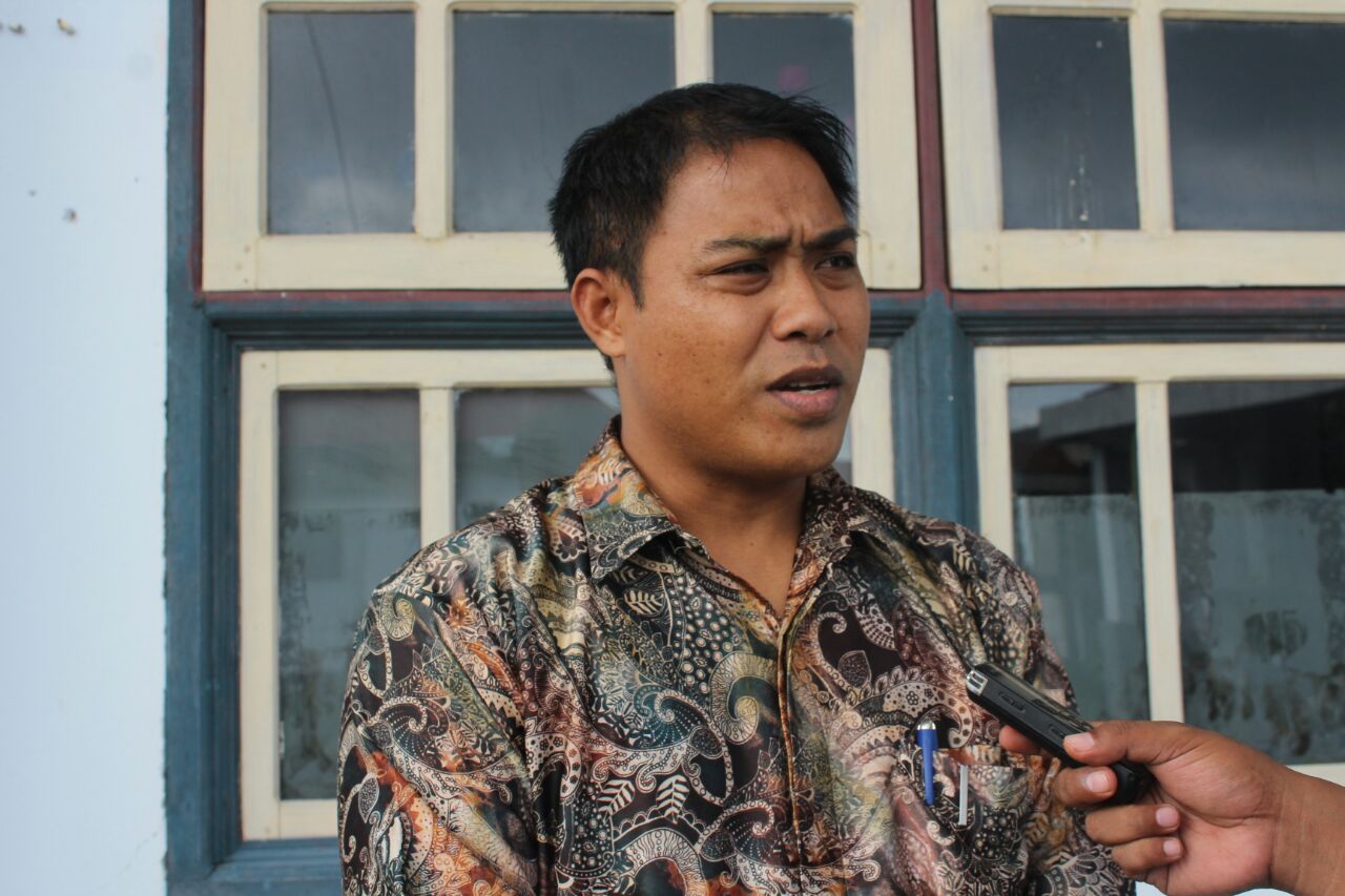 Ketua Panwaslu Talaud Jekman Wauda SS sentara diwawancarai oleh awak media.