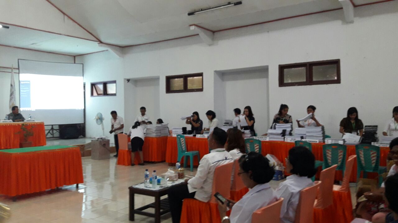 Kedatangan SWM-MENAWAN dan ribuan simpatisannya diterima langsung oleh kelima Komisioner yakni Ketua KPUD Velma Sumee, Anggota KPUD Rahma Zakawerus, Alex Suruh, Kader Talenggoran, Mexny Tamaroba dan Sekretaris KPUD Nelwan Maloring.