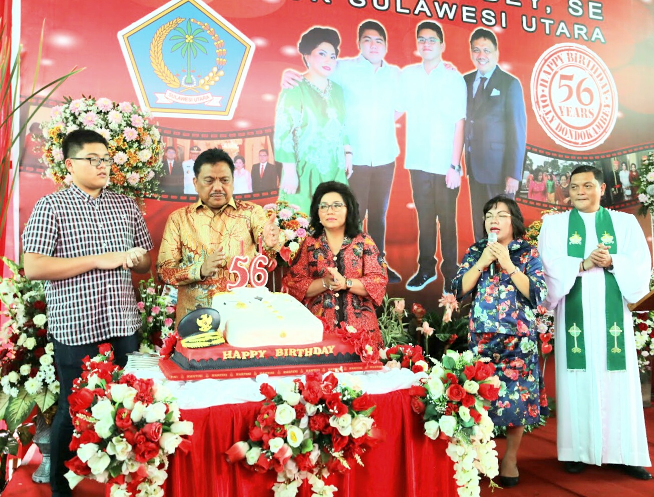 “Saya bersyukur pada kesempatan ini. Untuk orang terdekat saya bersabar, karena bagaikan (percikan) air mancur yang terlebih dahulu kena airnya adalah yang jauh. Tetapi yang dekat, akan ada saatnya,” kata Gubernur, dalam suasana perayaan yang penuh kekeluargaan didampingi isteri tercinta Rita Maya Dondokambey-Tamuntuan bersama anak bungsunya, Ray Dondokambey, di kediaman keluarga Desa Kolongan Kecamatan Minahasa Utara (Minut) pada Sabtu (18/11).