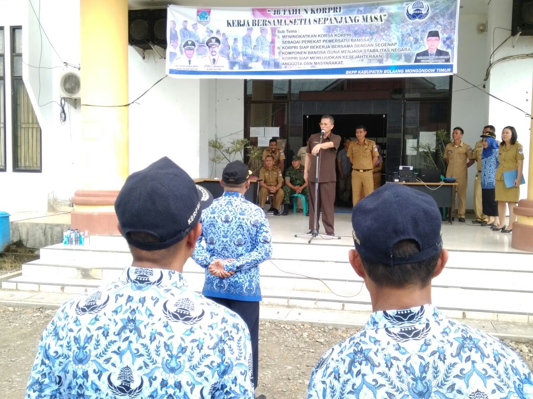 Boltim,detiKawanua.com – Untuk meningkatkan disiplin dan kinerja Aparatur Sipil Negara (ASN) dilingkungan Pemerintah daerah (Pemda) Bolaang Mongondow Timur (Boltim), Badan Kepegawaian Pendidikan dan Pelatihan (BKPP) Boltim menggelar lomba Peraturan Baris Berbaris (PBB) antar Satuan Kerja Perangkat Daerah (SKPD) dalam rangka HUT Korpri Ke-46.