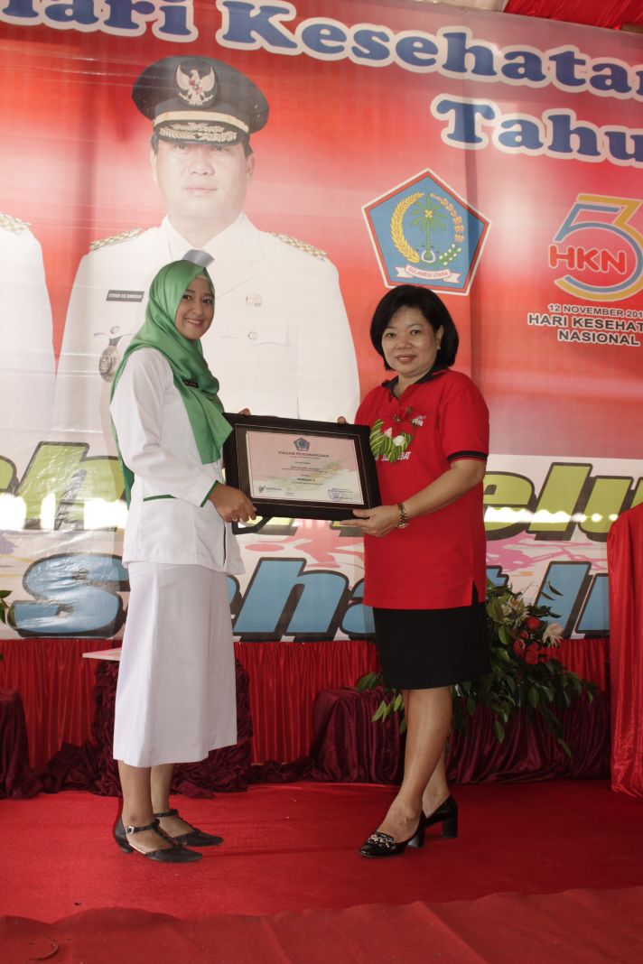 Penghargaan ini diserahkan langsung oleh Kepala Dinas Kesehatan Provinsi Sulut pada acara puncak perayaan Hari Kesehatan Nasional ke 53 hari Senin (04/12), yang diselenggarakan di Perkebunan Lamet Desa Rasi Kecamatan Ratahan Minahasa Tenggara. Demikian dikatakan Kepala Dinkes Boltim Eko Marsidi SKM, Selasa (05/12).