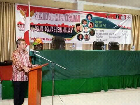 Diketahui, selain Yudi Latif, seminar ini juga diisi dengan pemberian materi dari Pengurus Ahmadiyyah Pusat Mln Ma’sum Ahmad Shd, Tokoh Kristen Sulut Pdt Dr Nico Gara MA, Intelektual Muda NU Zuhairi Misrawi, Nia Sjarifudin daru UKP-PIP, Denni Pinontoan STh MTh dari GCDS. (Indra)