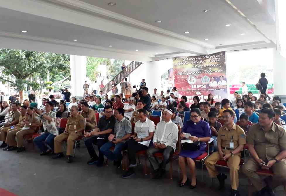 Manado, detiKawanua.com – Prosesi ibadah perayaan menyambut Natal dari Jurnalis Independen Pemprov Sulut (JIPS) bersama Gubernur Sulut (Olly Dondokambey) dan Wakil Gubernur (Steven Kandouw) dan jajaran SKPD lingkup Pemprov Sulut yang digelar di Lobi Kantor Gubernur Sulut pada Selasa (19/12) siang tadi, dirangkaikan pula dengan penyerahan bantuan kepada ratusan anak korban bencana banjir. Dimana, suplai bantuan itu juga berasal dari Rajawali Corpora Archi Indonesia, PT Meares Soputan Mining (MSM) dan PT. Tambang Tondano Nusajaya (TTN) yang merupakan perusahaan yang bergerak dibidang pertambangan.