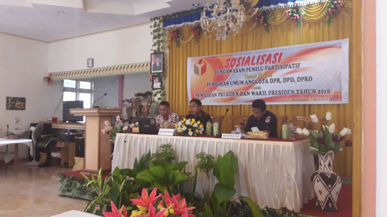 Talaud, detiKawanua.com – Panwaslu Kabupaten Kepulauan Talaud menggelar Sosialisasi Pengawasan Pemilu Partisipatif Dalam Rangka Pemilu Umum Anggota DPR, DPD, DPRD Serta Pemilihan Presiden Dan Wakil Presiden Tahun 2019, Jumat (22/12).