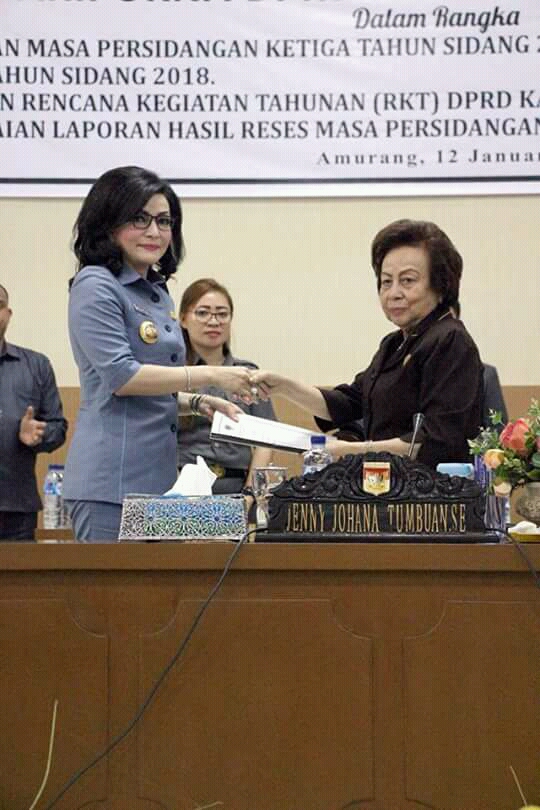 kesempatan tersebut Tetty sapaannya menghaturkan ucapan selamat hari Natal dan Tahun Baru, kepada Pimpinan dan anggota Dewan yang terhormat, serta kepada unsur Forkompimda, para kepala SKPD, dan kepada semua yang hadir dalam paripurna hari ini.” tambah Bupati yang memiliki paras cantik ini.