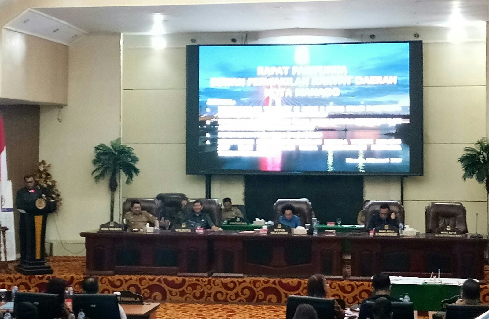 Tampak hadir dalam paripurna tersebut, Dandim 1309 Manado Letkol Inf Arif Harianto, Plt Sekda Manado Drs Rum Dj Usulu, para Staf Ahli Walikota, para Asisten, kepala Perangkat Daerah, Camat serta Lurah se-Kota Manado. (Indra)