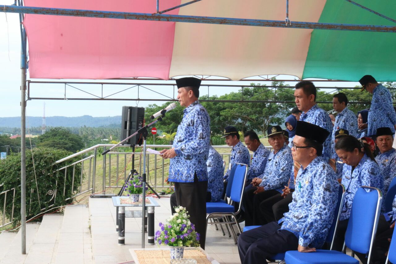 Sekda Boltim, Muhammad Assagaf tengah pimpin apel Korpri.